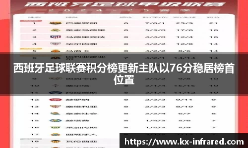 西班牙足球联赛积分榜更新主队以76分稳居榜首位置